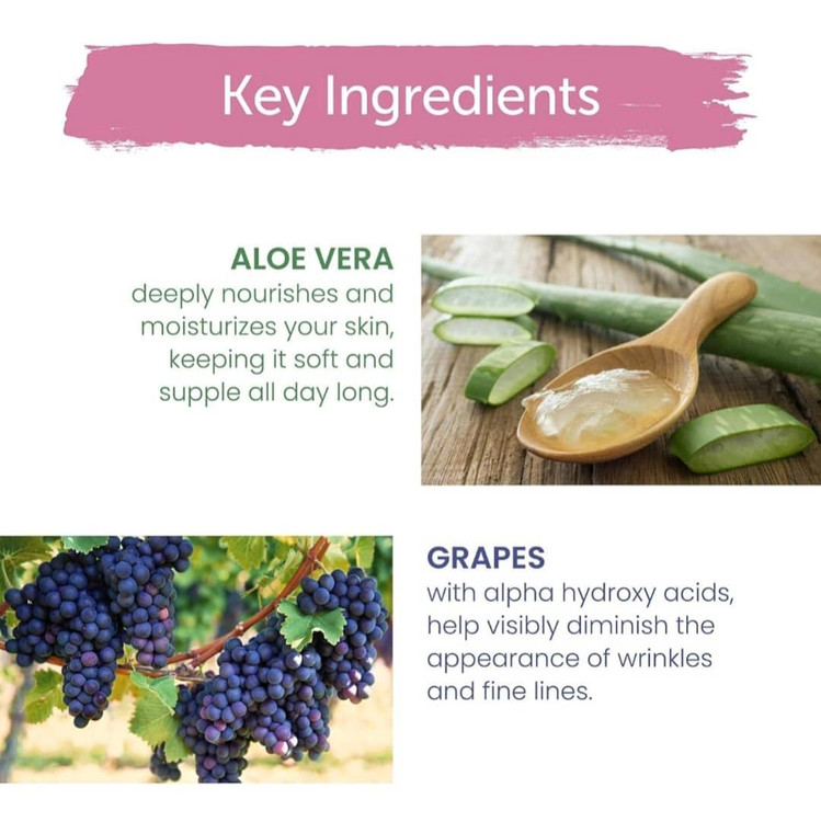 آلوئه ورا، سرشار از ساکارید، پوست شما را عمیقاً تغذیه و مرطوب میکند و آن را در تمام طول روز نرم و لطیف نگه میدارد.