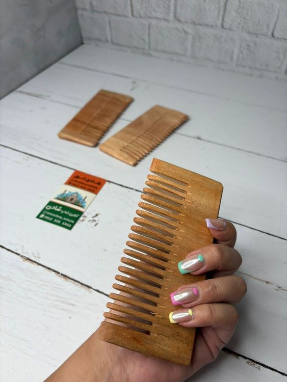 شانه چوبی دندانه درشت ۱۴ سانتی با بهترین کیفیت هندی