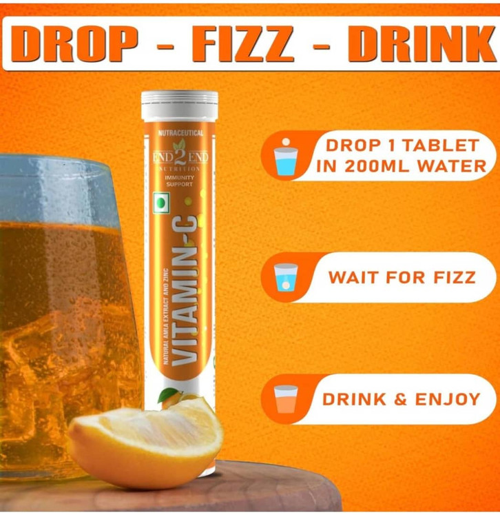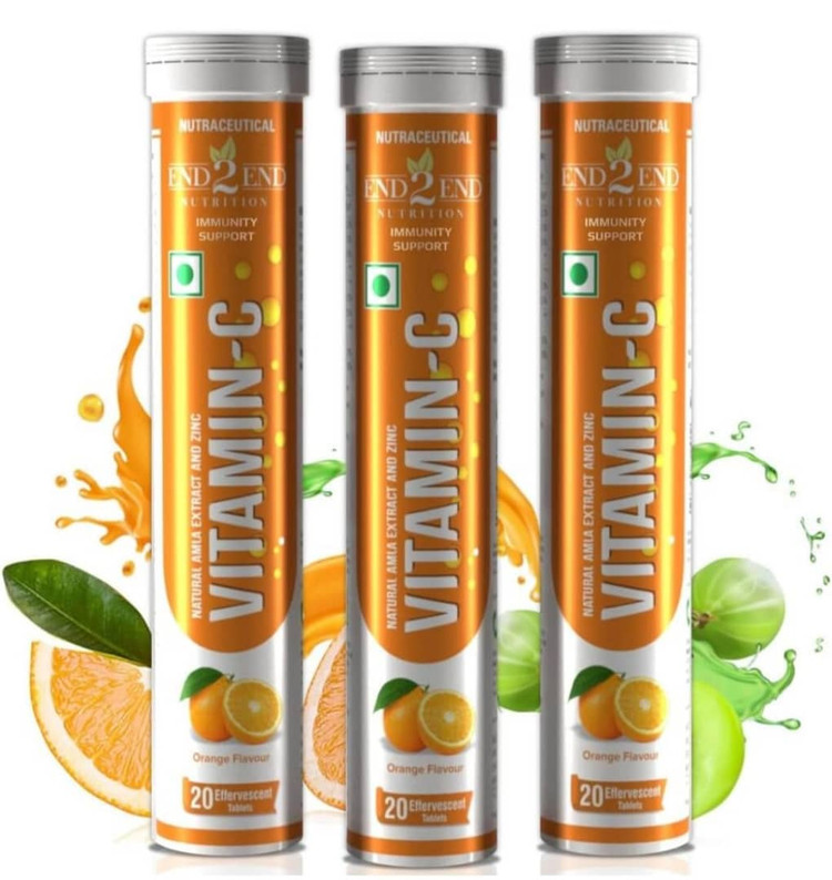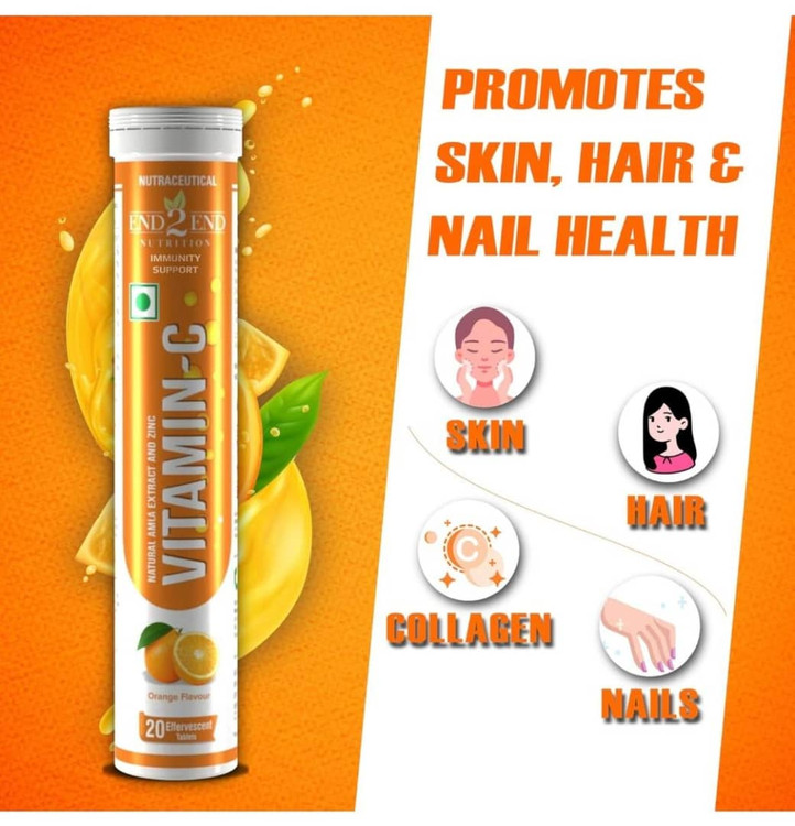 End2End Nutrition Natural Vitamin C - Amla Extract + Zinc for Immunity | Helps to Boost Collagen for Healthy Skin, Hair & Nails | Orange Flavour