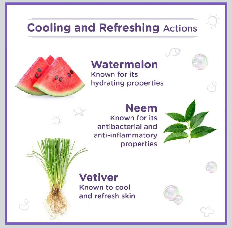 ترکیبات کلیدی: خس خس خواص خنک کنندگی و طراوت وتیور به طور سنتی برای مدیریت خارش و بثورات استفاده می شود.