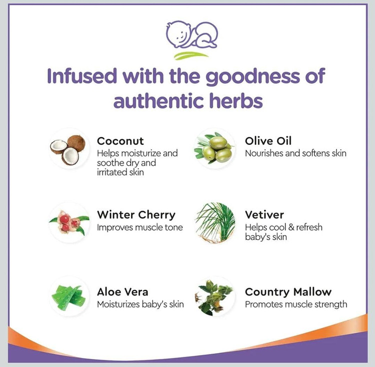 روغن نارگیل ماساژ کودک هیمالیا با ترکیبی منحصر به فرد از روغن ها و ترکیبی غنی از گیاهان که به تغذیه و بهبود درخشندگی پوست کمک می کند، فرموله شده است. به طور سنتی، روغن خردل در تسکین خارش و جلوگیری از اختلالات پوستی مفید است. ماساژ منظم گردش خون را بهبود می بخشد، ماهیچه ها را تقویت می کند و به رشد کودک شما کمک می کند.