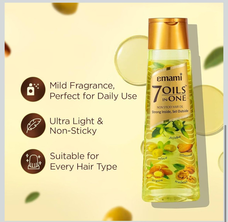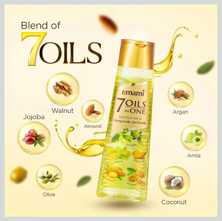 Emami 7 Oils in One Hair Oil | Makes Hair 20x Stronger and Manageable | Coconut Oil, Amla, Jojoba, Olive, Walnut, Argan & Almond Oils | 500 ML