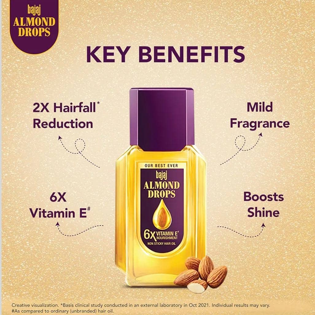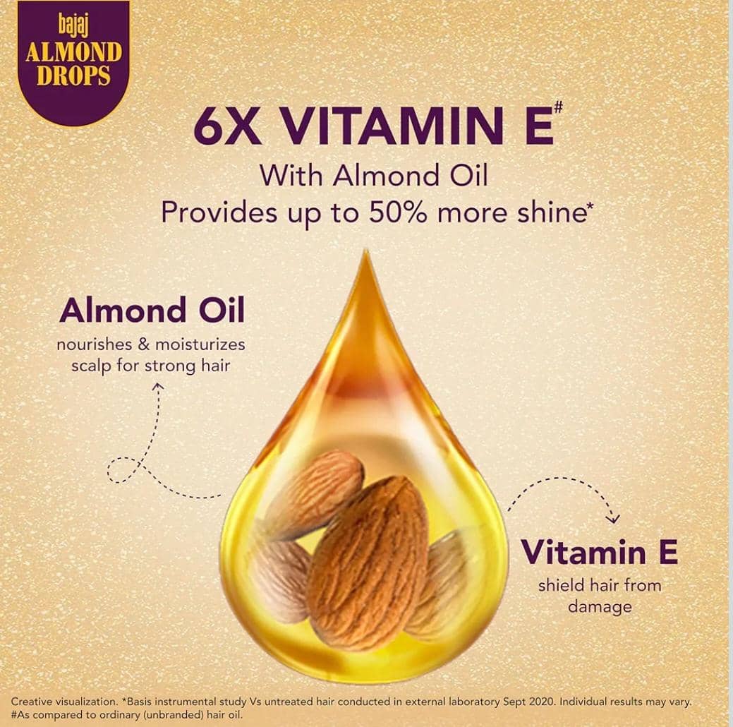 Bajaj Almond Drops Hair Oil, 625ml, Light & Non-Sticky with 6X Vitamin E for 2X Hair fall Reduction