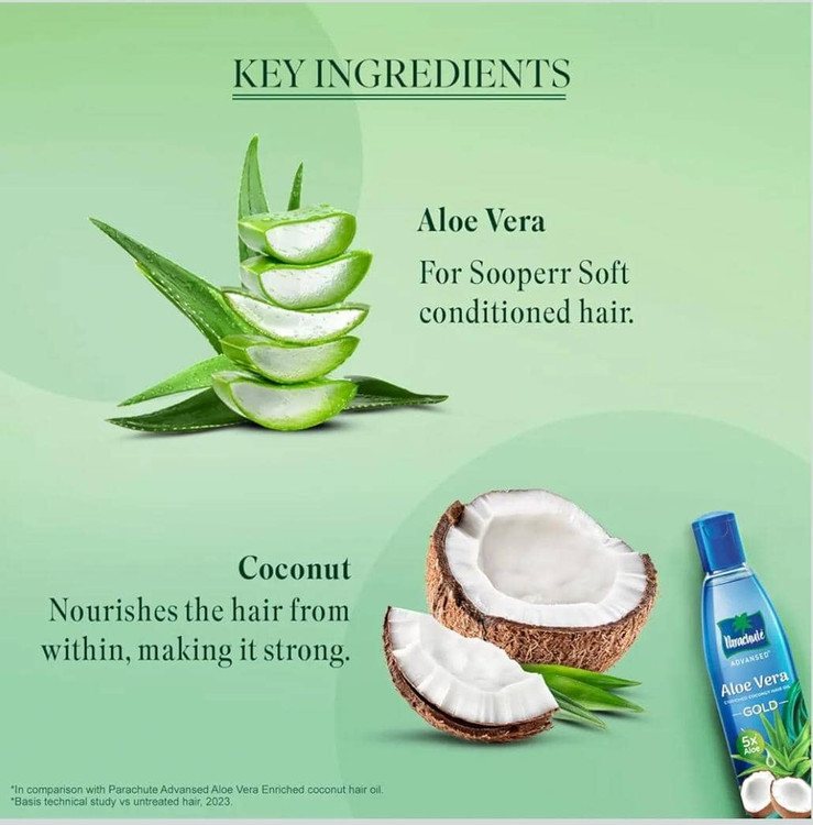 غنی شده با روغن نارگیل، روغن نارگیل غنی شده با آلوئه ورا Parachute Advansed GOLD 10 برابر عمیق تر از هر روغن مو دیگری نفوذ می کند و آنها را از هسته قوی می کند.