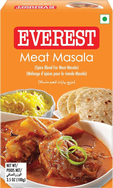 ادویهای که در تصویر میبینیم Everest Meat Masala است؛ یک ترکیب آمادهی ادویه مخصوص تهیه انواع غذاهای گوشتی، مخصوصاً کاریهای هندی. این محصول معمولاً شامل ترکیبی از ادویههای معطر و گرم است و برای طعمدهی بهتر به گوشت در غذاهای آبکی یا نیمهآبکی استفاده میشود.