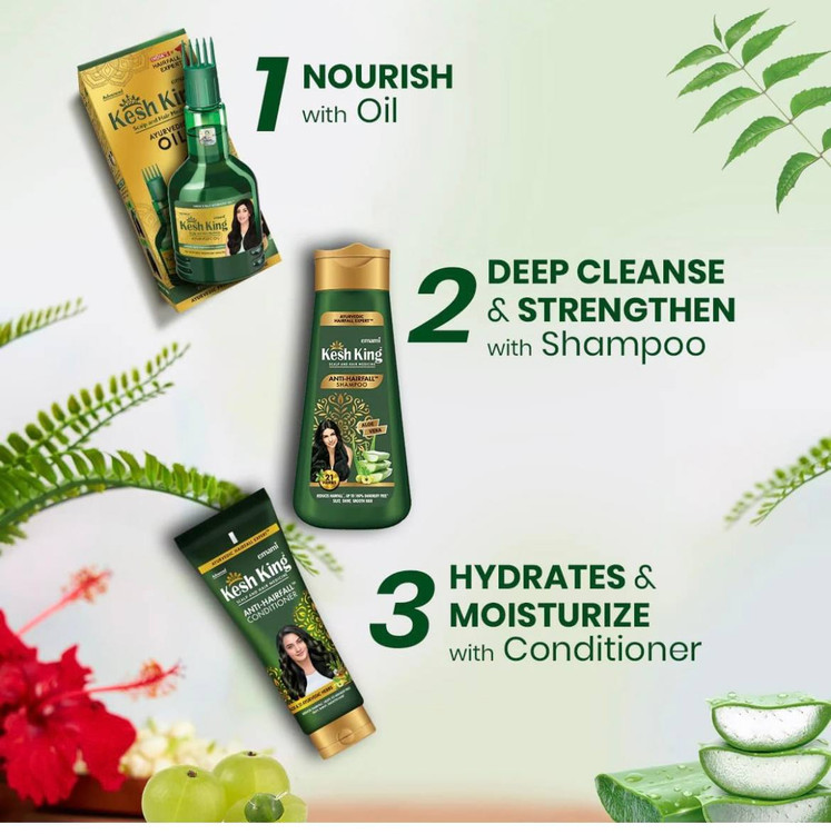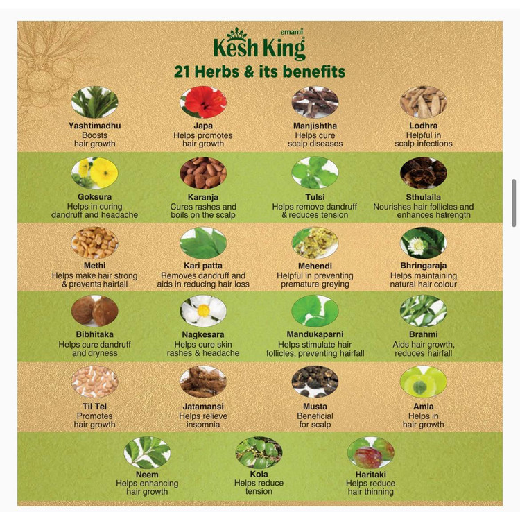 - تقویت و تغذیه ریشه و پوست سر: ترکیبات گیاهی مانند آملَکِی (آملا)، بهرنکراجا، شیکاکای، نیِم و … به تغذیه فولیکول مو کمک میکنند؛ پوست سر سالمتر شود.